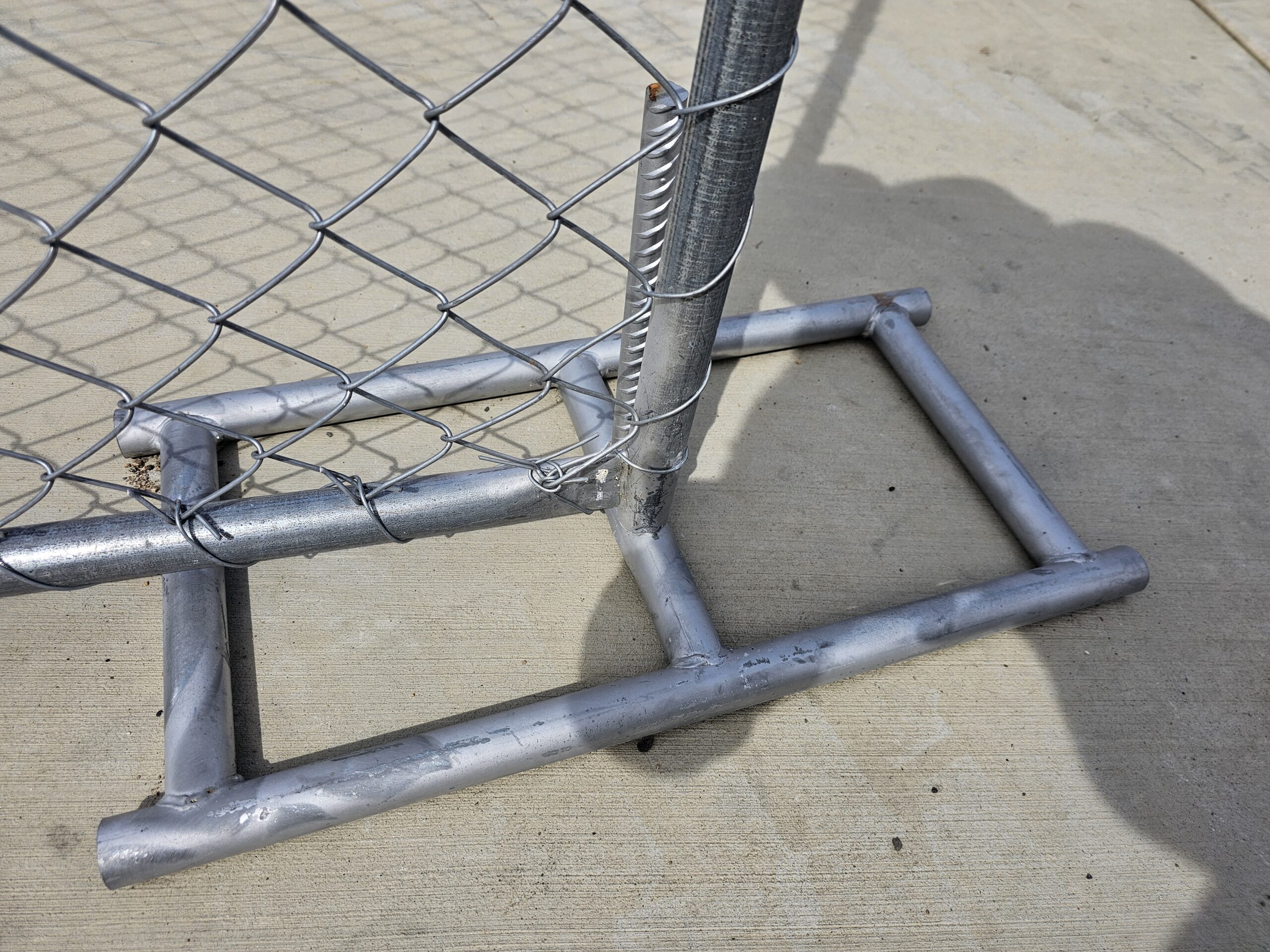Our stands also incorporate an open tube design perpendicular to the fence. This allows installers the option to insert 1″ O.D. pipe inside the stands, perpendicular to the fence line, to widen the stance of the stand on either side of fence for better stability. The pegs are also welded with a gap of 1.25″ between pegs so panel clamps, instead of saddle clamps, can be used to virtually eliminate flex and disconnection on windy days. Stand measures 24″ X 12″ with 10″ tall Pegs.